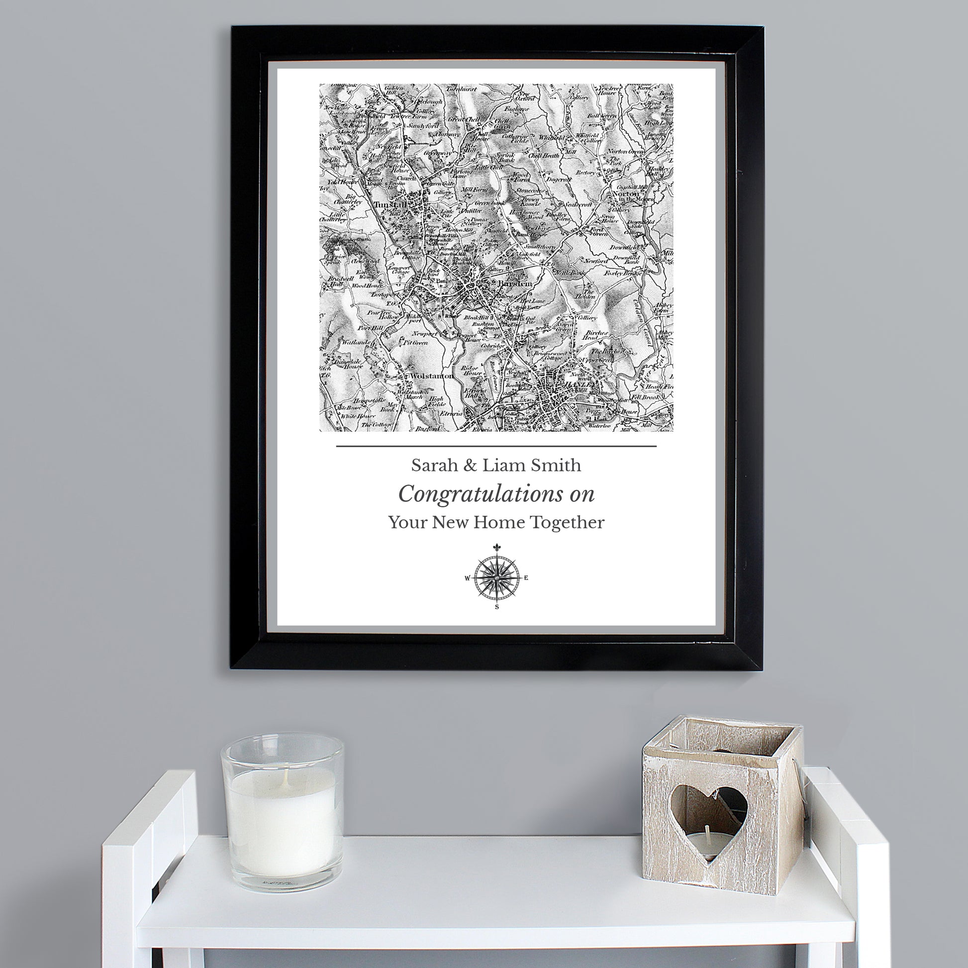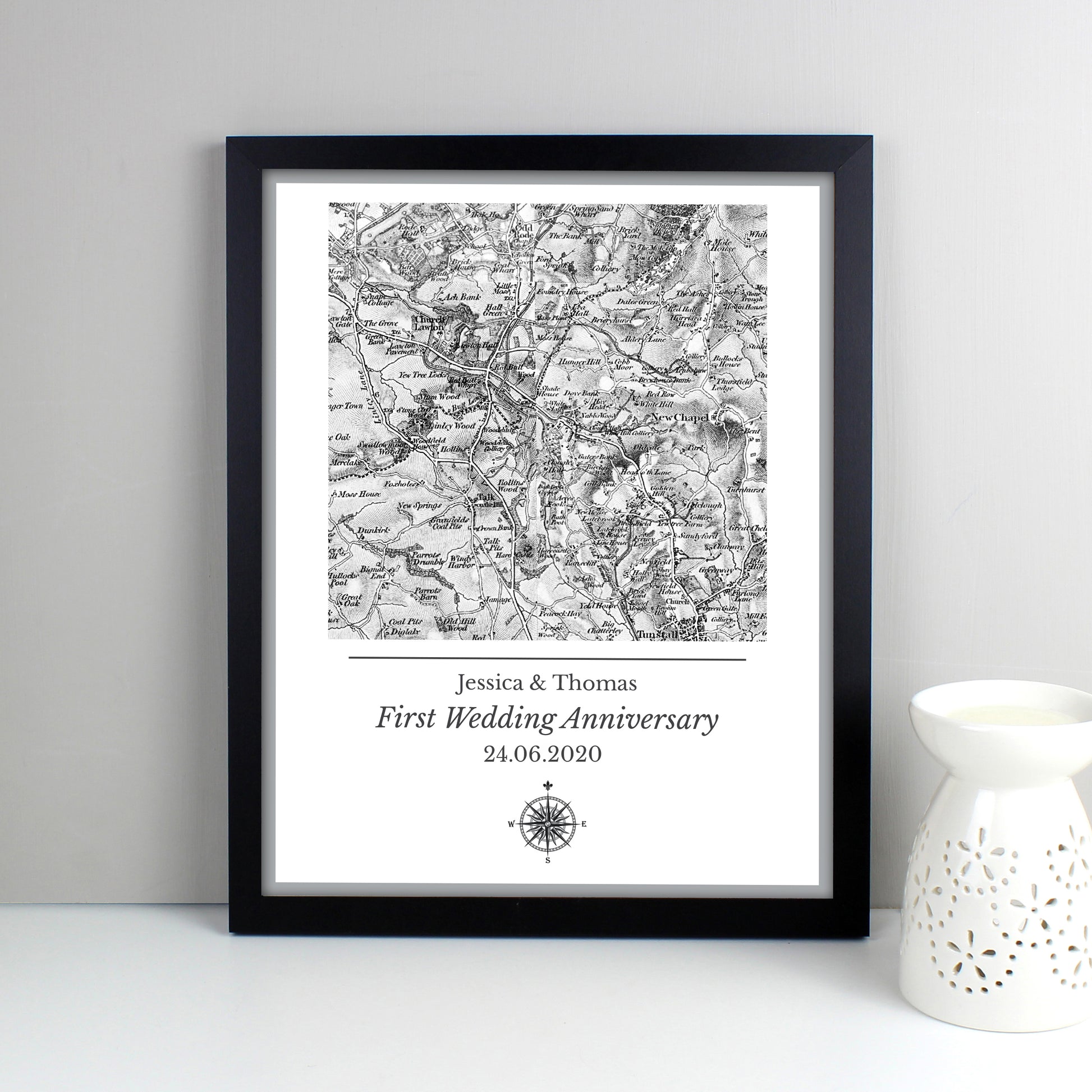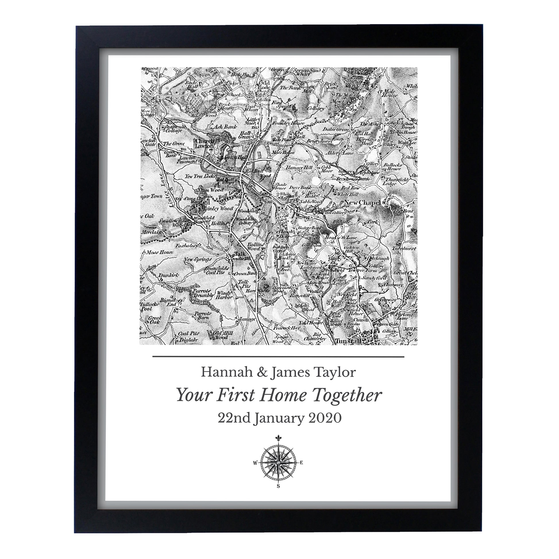Personalised 1805 - 1874 Old Series Map Compass Black Framed Print