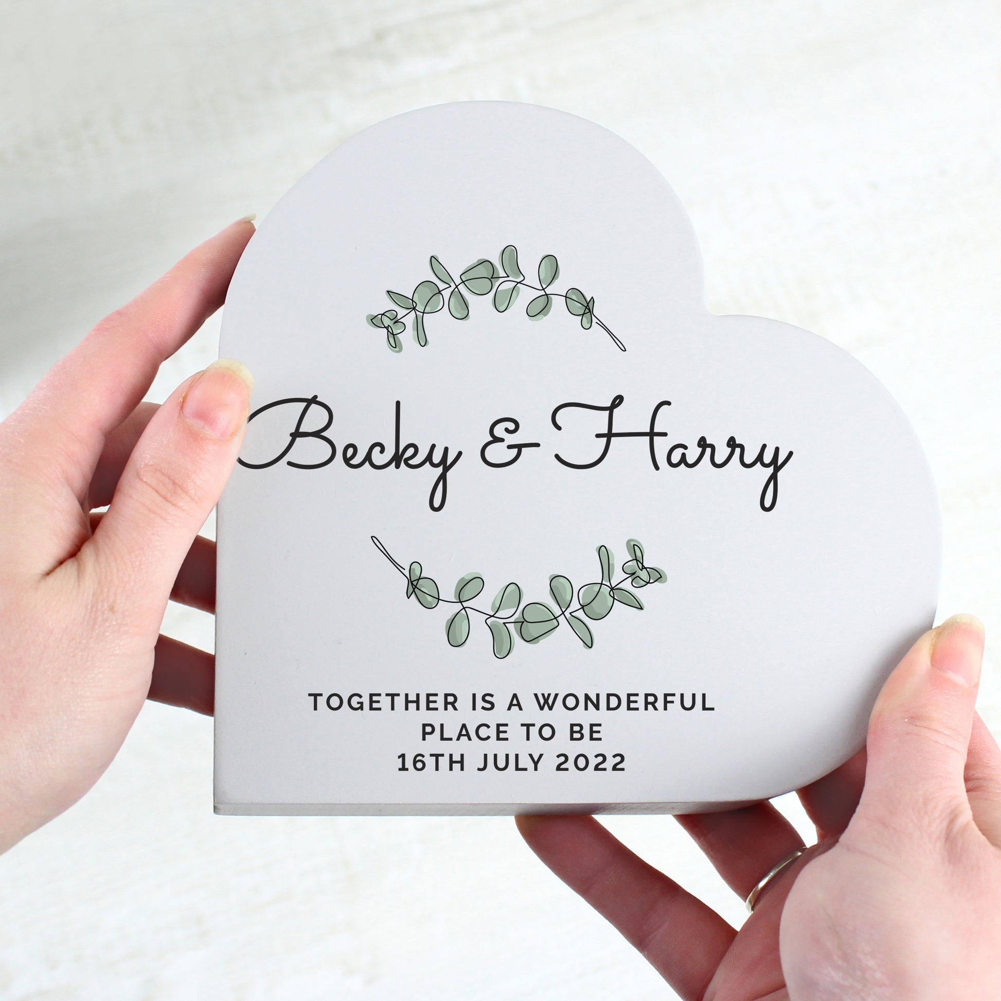 You can personalise this free standing heart ornament with up to 4 lines. Line 1 is the larger text and has up to 20 characters available. Lines 2-4 have up to 25 characters available per line.