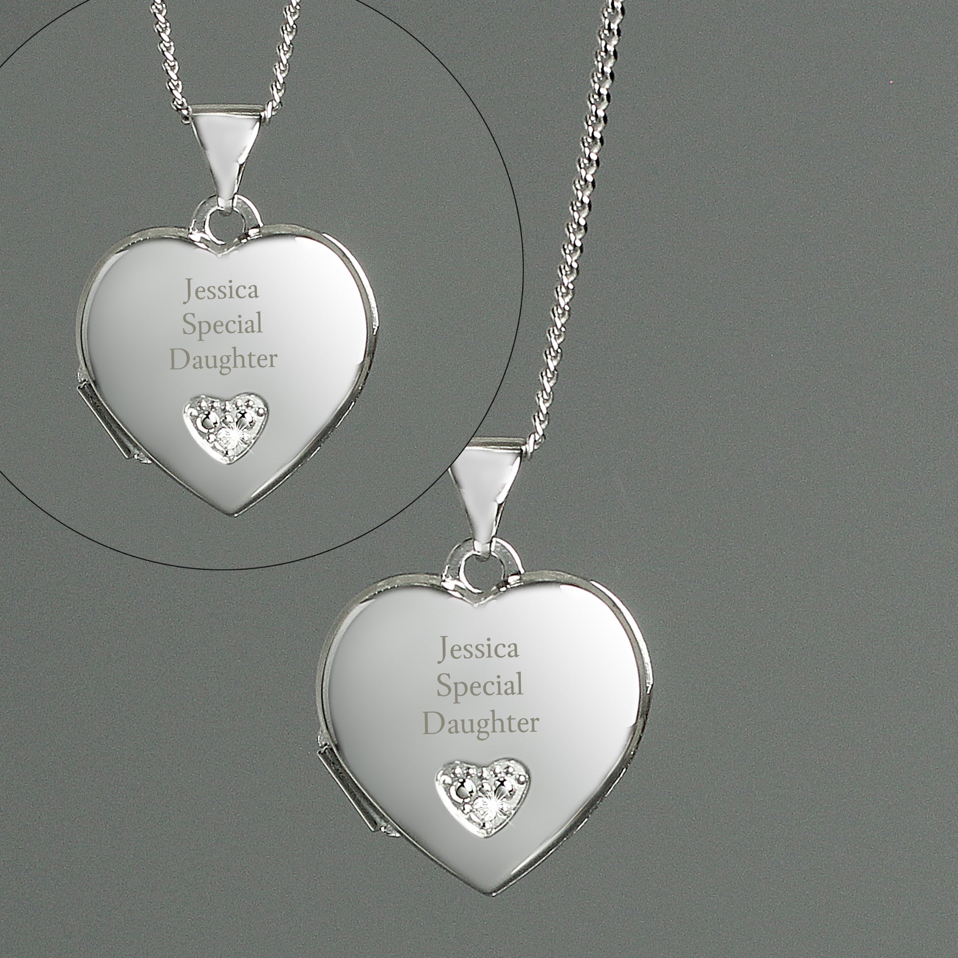 Personalised Children's Sterling Silver and Cubic Zirconia Heart Locket Necklace