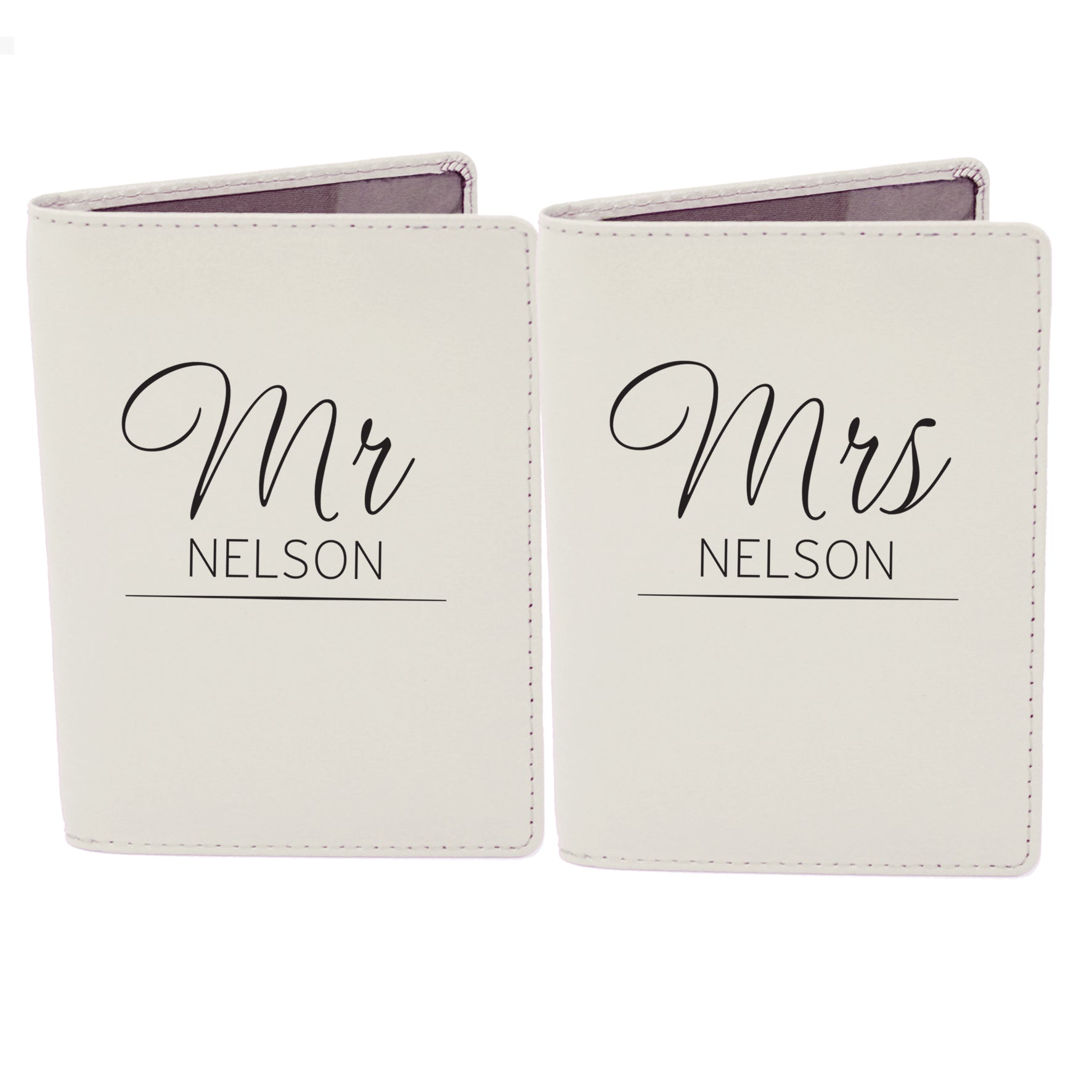 Personalised Classic Mr & Mrs Cream Passport Holders