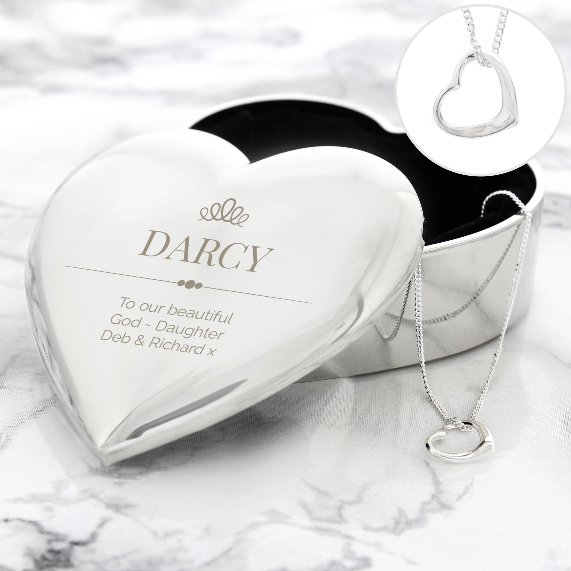 Personalised Elegant Crown Heart Trinket Box & Sterling Silver Necklace Set