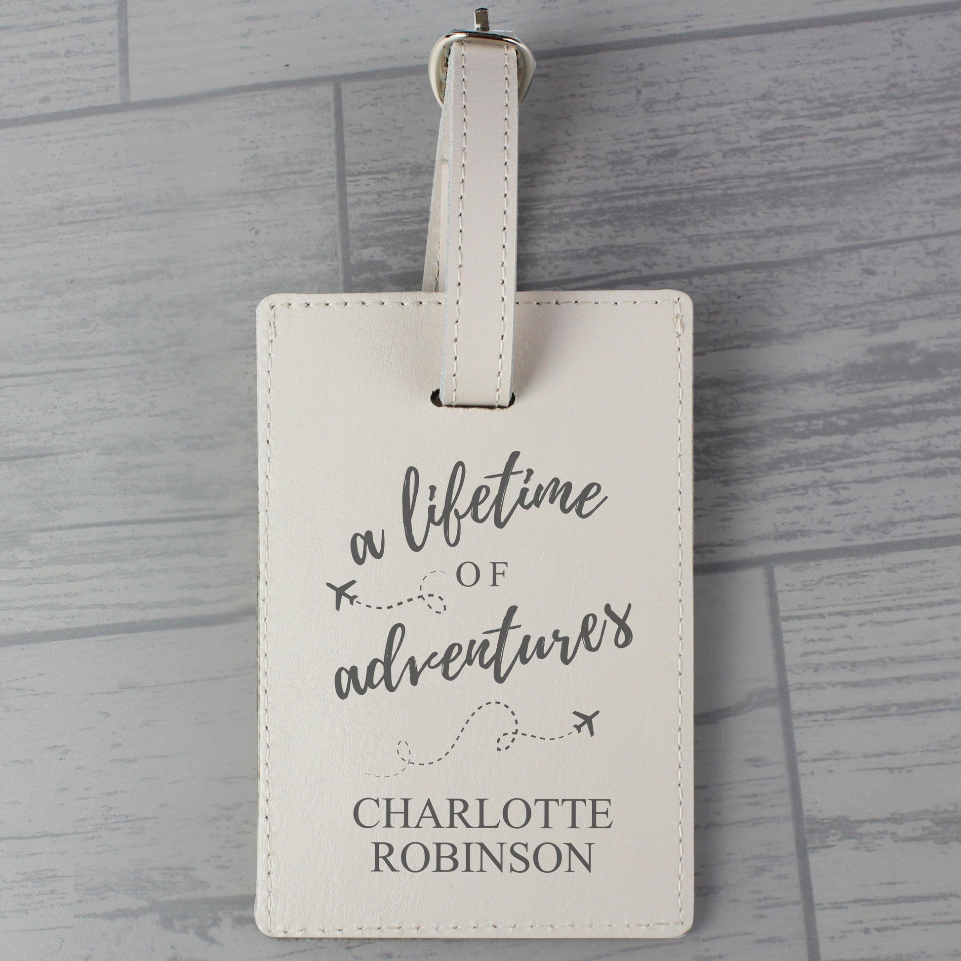 Personalised 'Lifetime of Adventures' Cream Luggage Tag