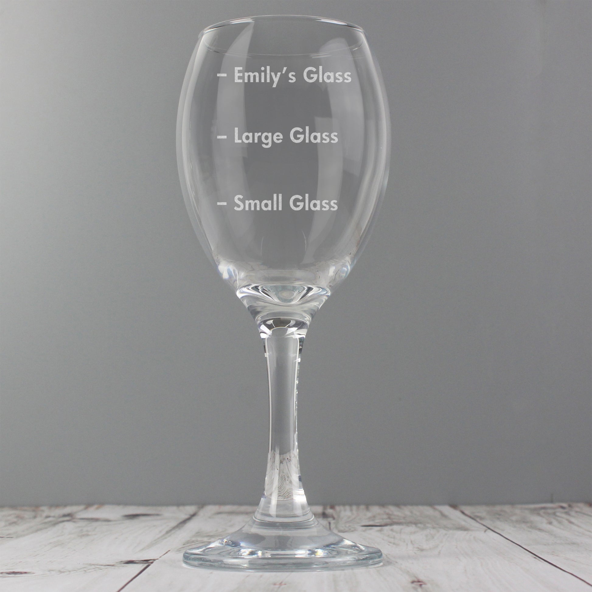 This glass can be personalised with a name / role with up to 12 characters long. "Glass" is fixed text and does not need to be entered at the end of the name. "Large Glass" & "Small Glass" is also fixed text.