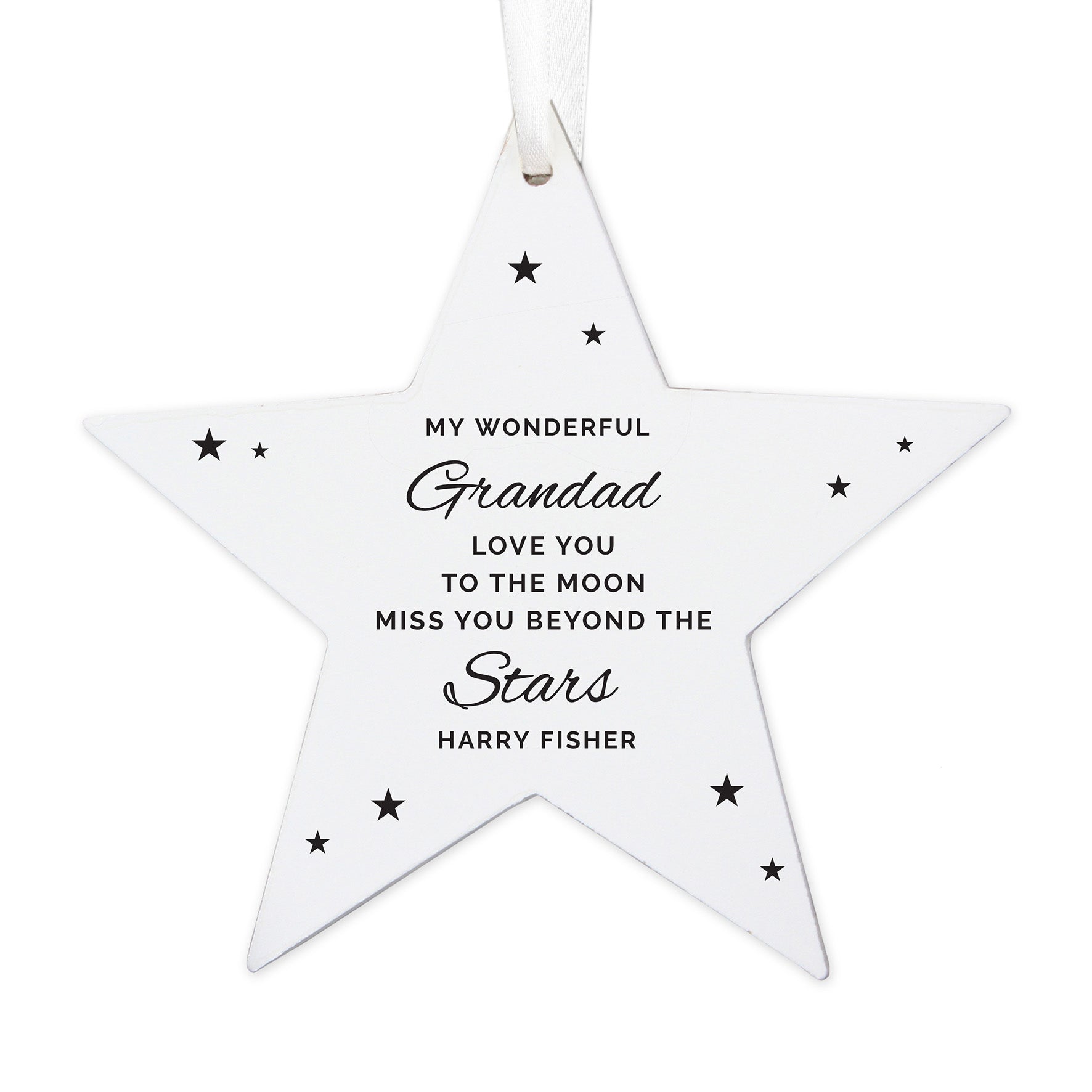 This Personalised Miss you beyond the stars Wooden Star Decoration is a lovely way to remember a loved one.