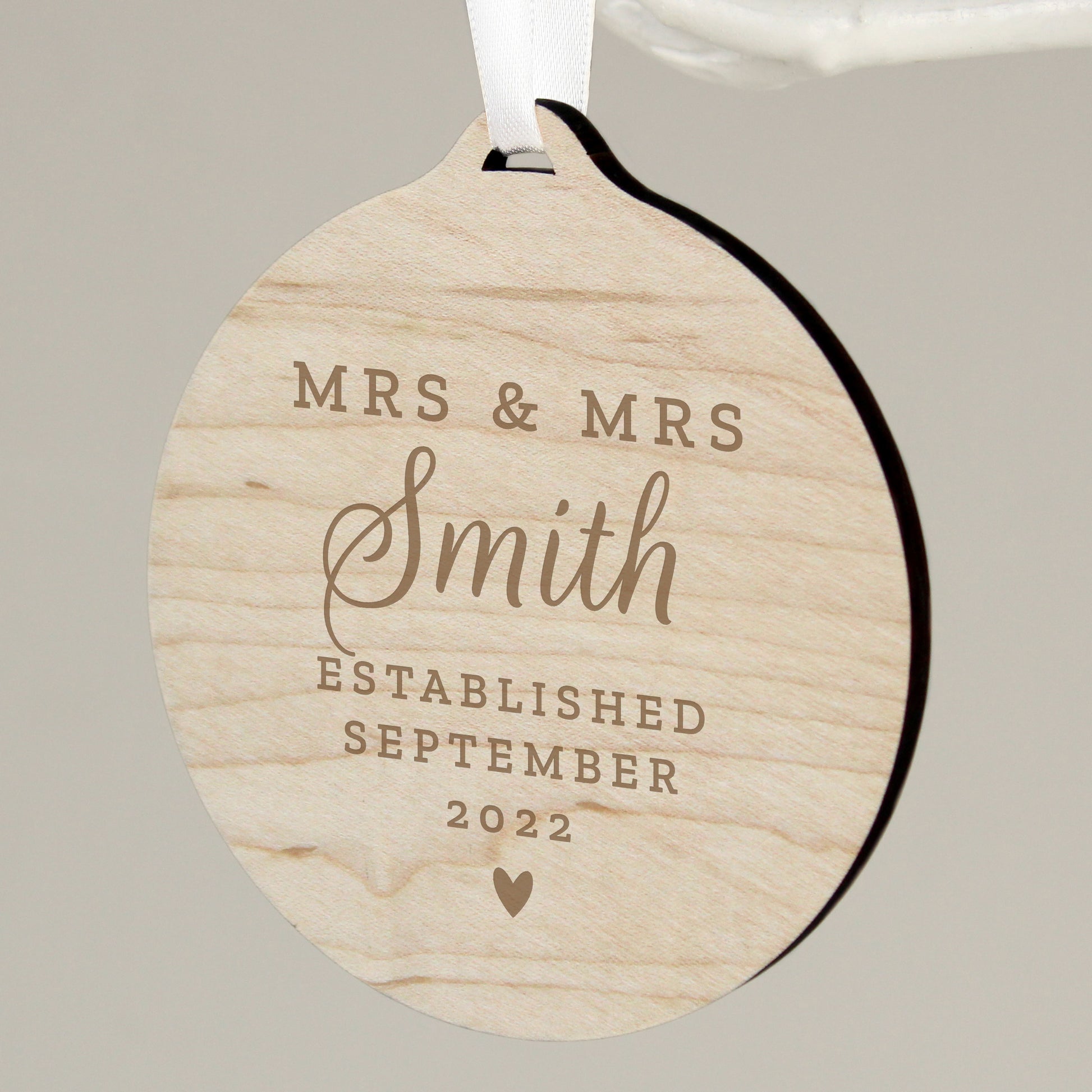 This Personalised Mr & Mrs Round Wooden Decoration adds a personal touch to the home.