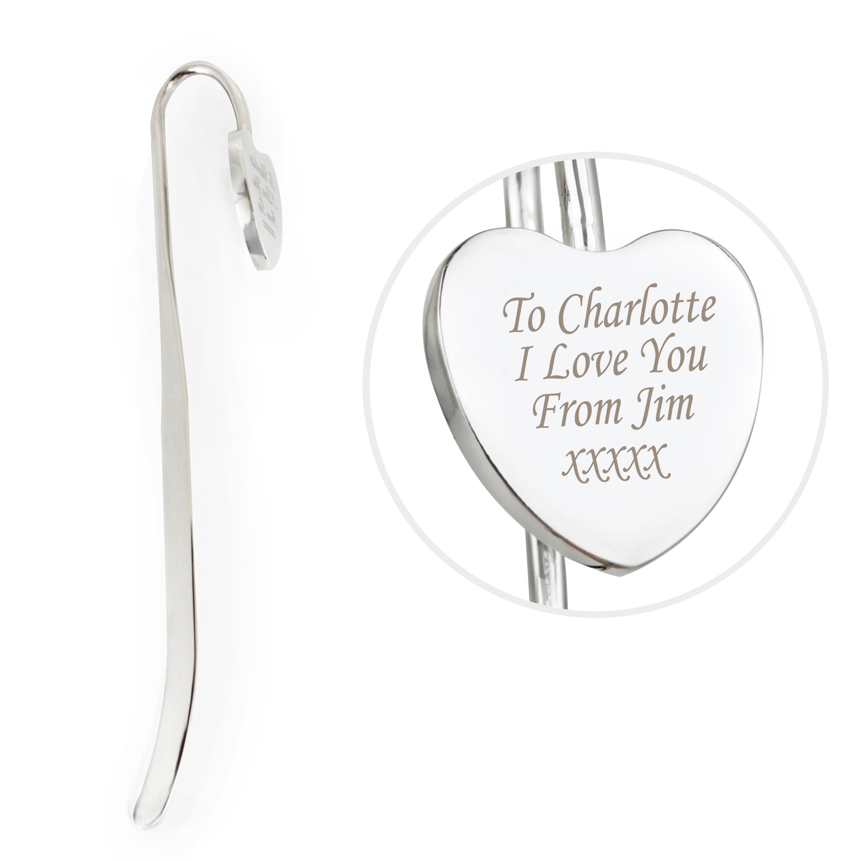 Personalise this Silver Heart Bookmark with any message- line 1 up to 12 characters, line 2 up to 10 characters, line 3 up to 8 characters and line 4 up to 5 characters.
