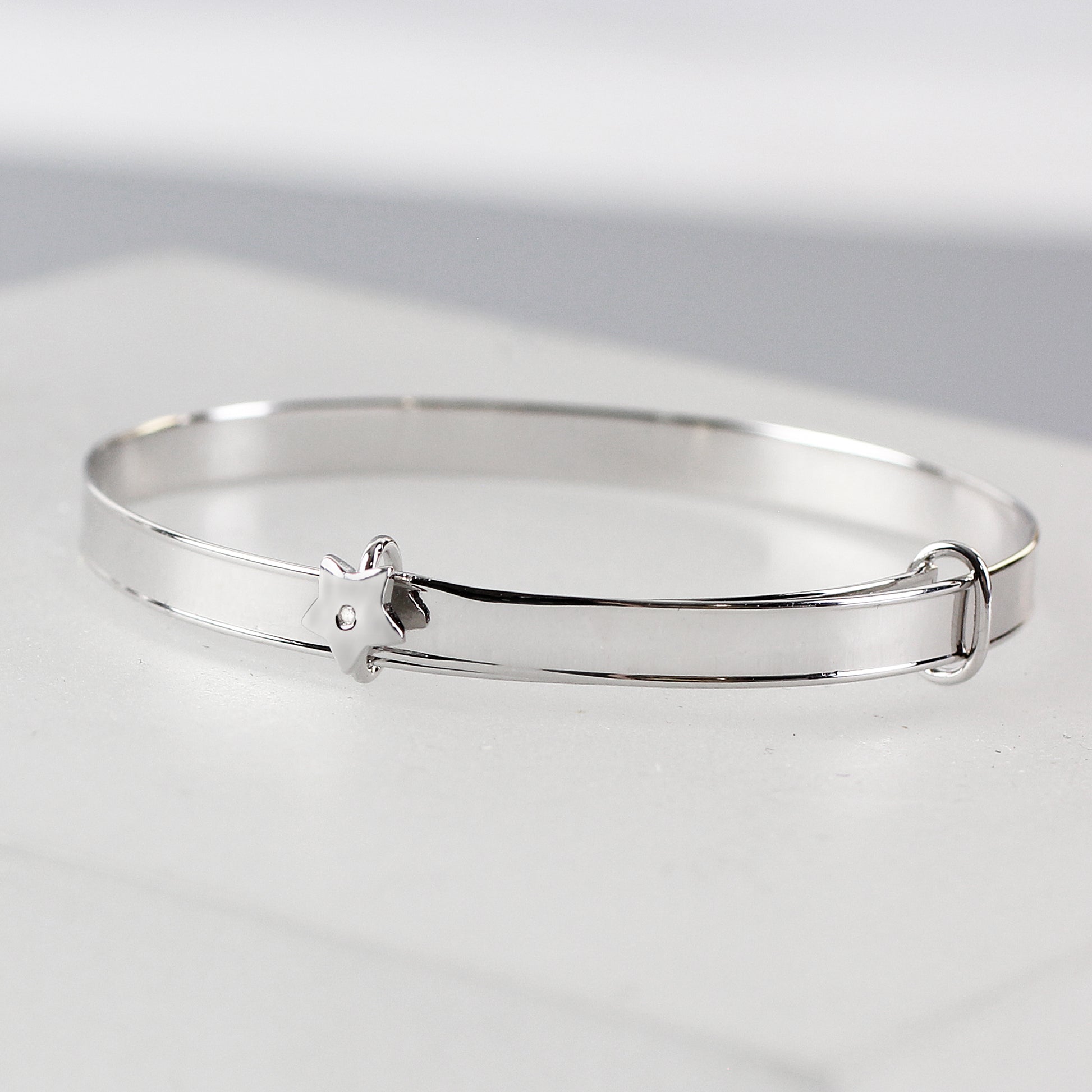 Personalised Sterling Silver Childs Expanding Diamante Star Bracelet