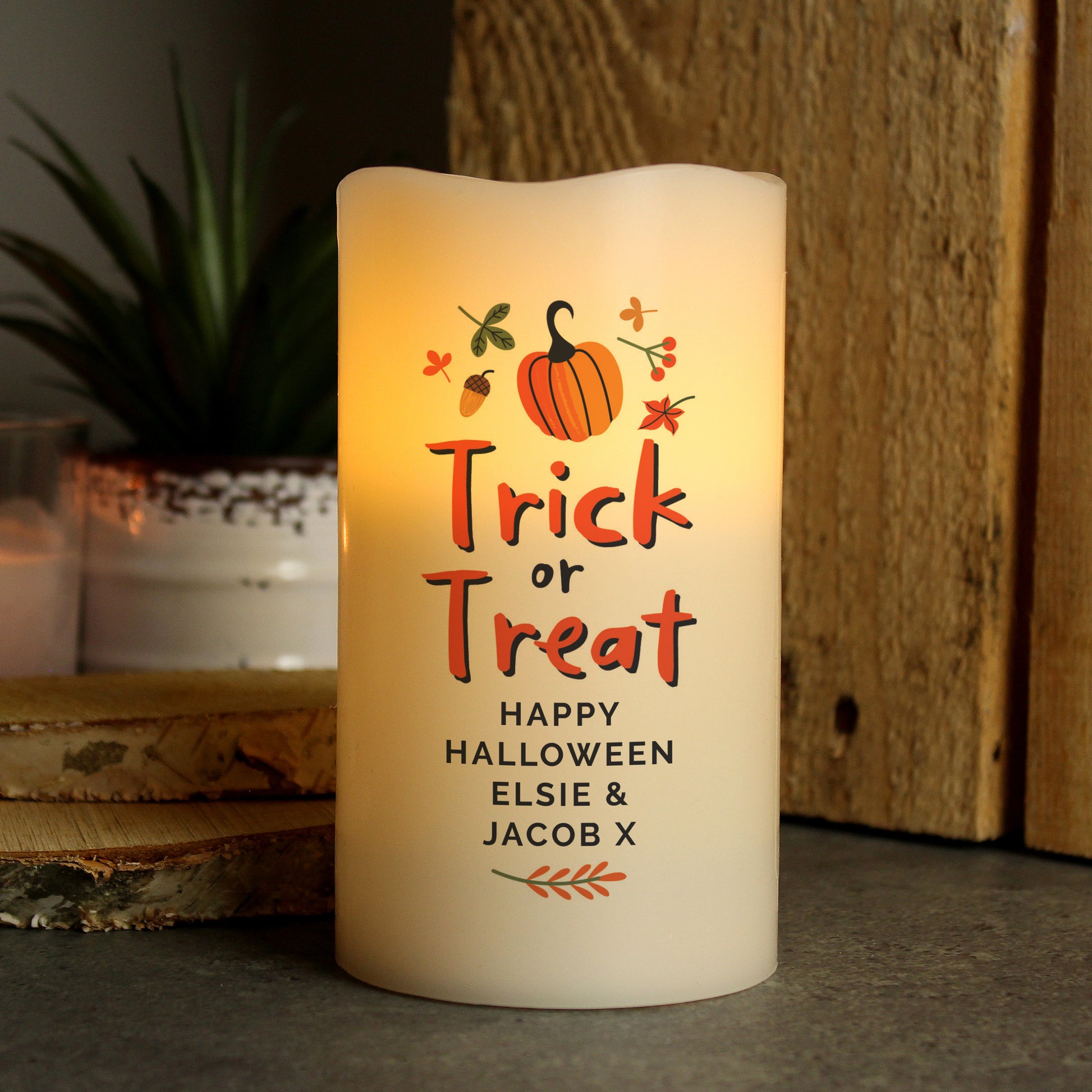 This beautiful and safe Personalised Trick or Treat LED Candle is the perfect addition to your Halloween Decorations
