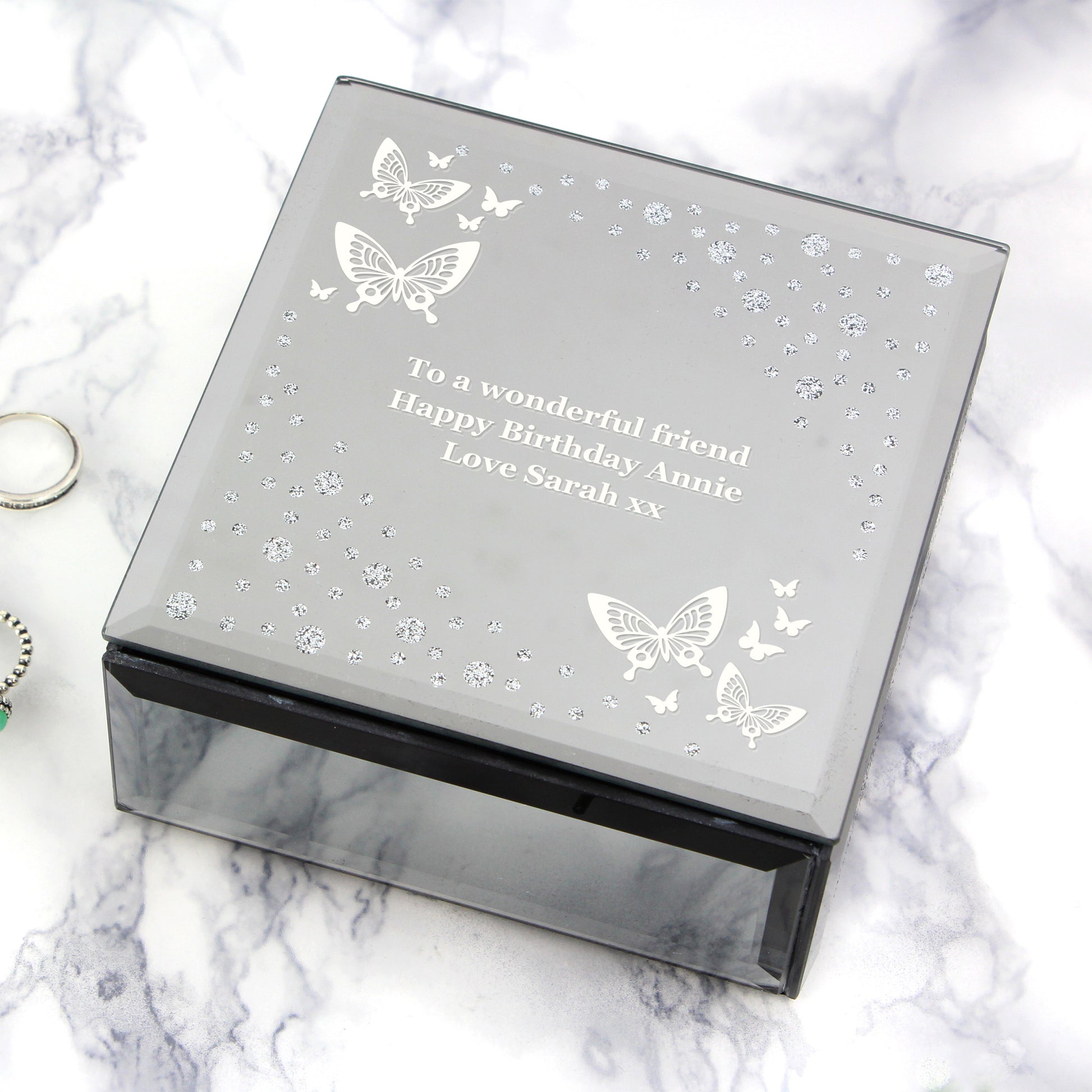 Our Personalised White Butterfly Diamante Glass Trinket Box is a stylish place to keep all of life's little treasures!